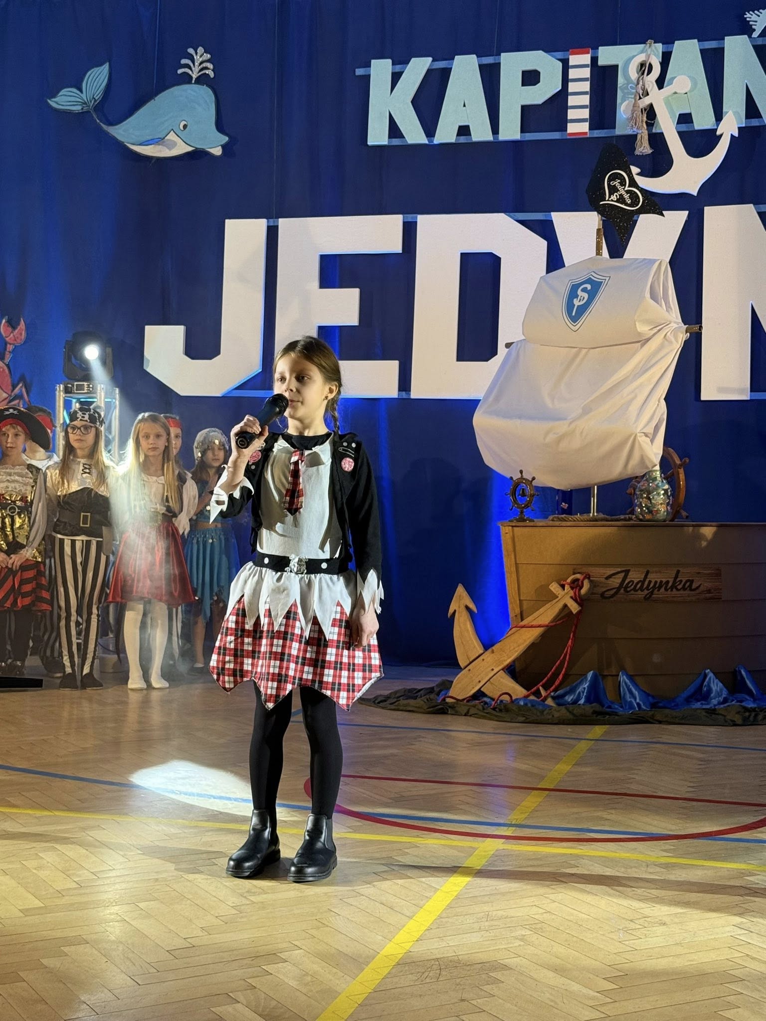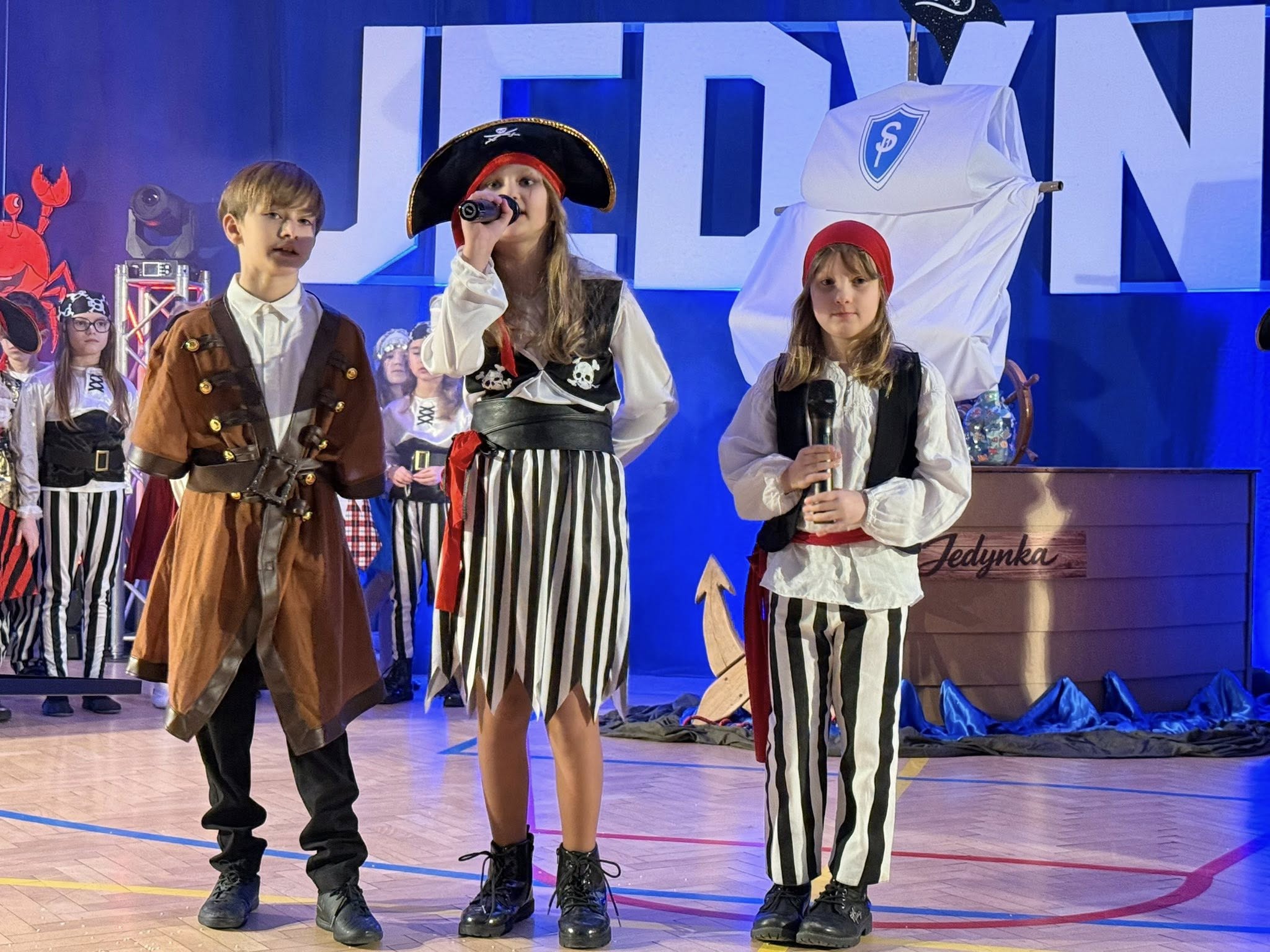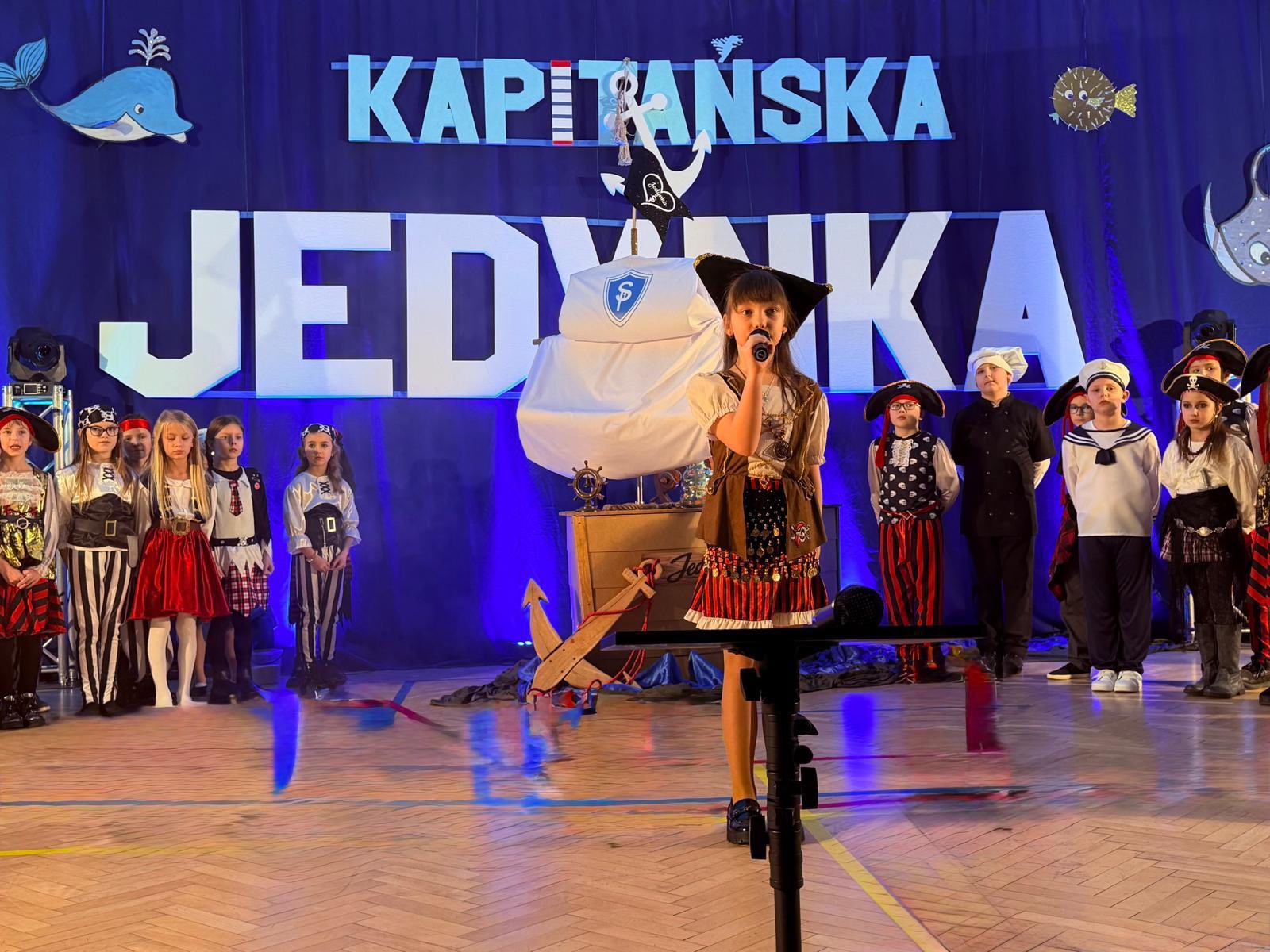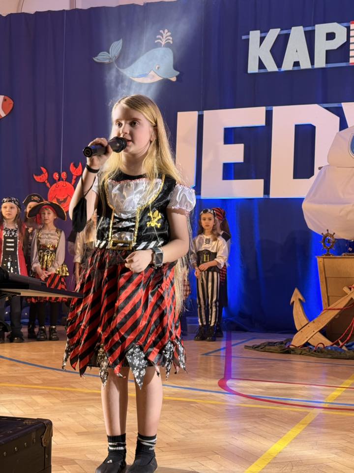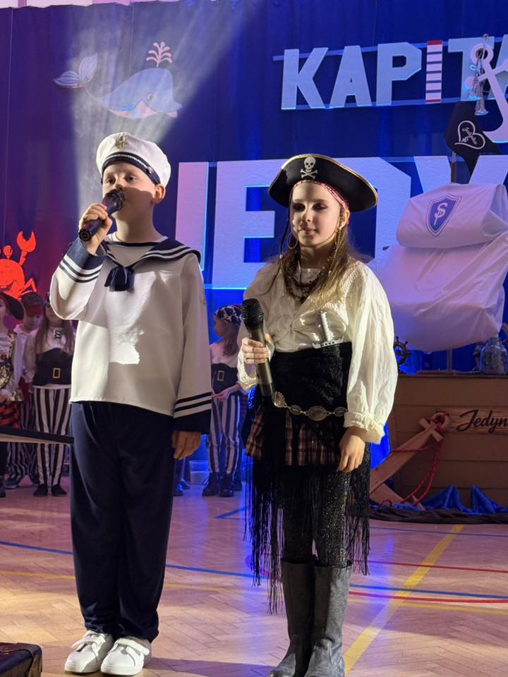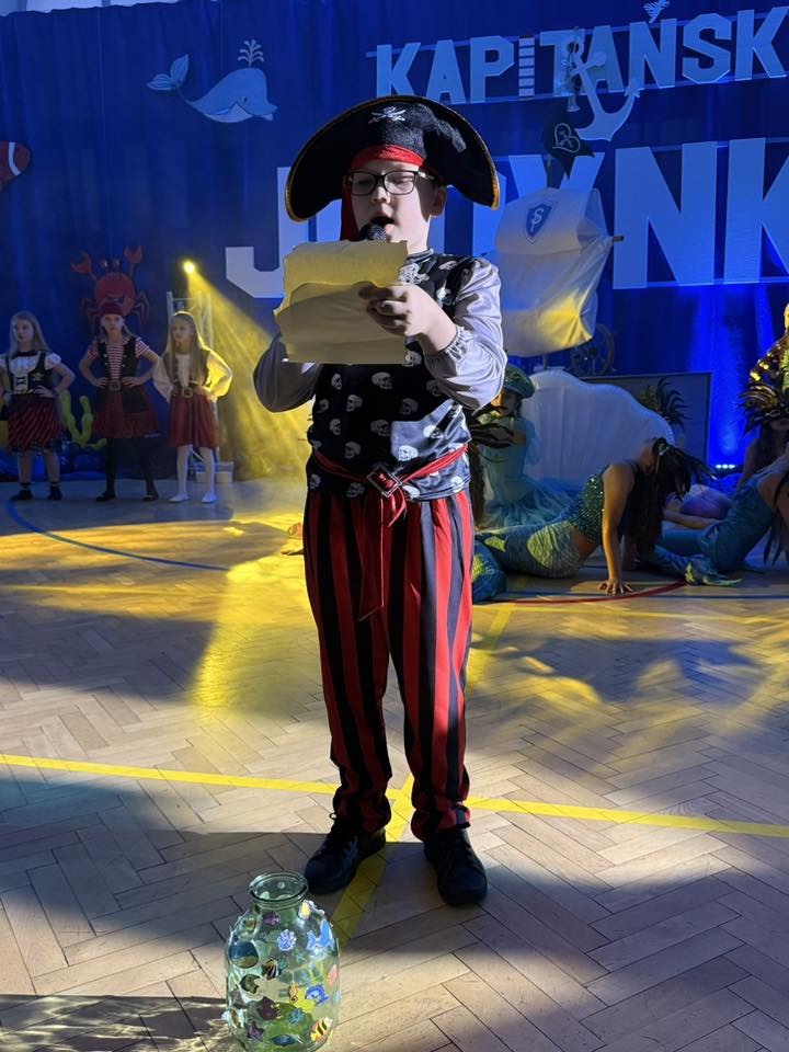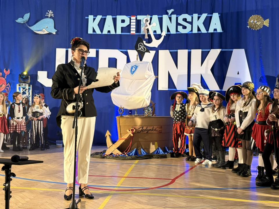 Wyjątkowym momentem było także wykonanie specjalnie przygotowanej na tę okazję piosenki o szkole, ułożonej z myślą o najmłodszych. Utwór pełen ciepłych słów o przyjaźni, nauce i wspólnym odkrywaniu świata, zaśpiewali nauczyciele, wzbudzając ogromne wzruszenie wśród dzieci oraz rodziców. Wspólny śpiew doskonale wpisał się w marynistyczny klimat wydarzenia i podkreślił, że „Kapitańska Jedynka” to miejsce, w którym każdy uczeń może rozwinąć skrzydła. Niezwykle nastrojowym punktem programu było również odczytanie tajemniczego listu, który – jak przystało na morską opowieść – został odnaleziony w butelce. Dyrektor szkoły i jednocześnie Kapitan Jedynki, Magdalena Andrzejczak, odczytała jego treść, zapraszając do wspólnej podróży ku wiedzy, marzeniom i sukcesom. Dziękujemy za tak liczny udział i wspaniałą atmosferę.
