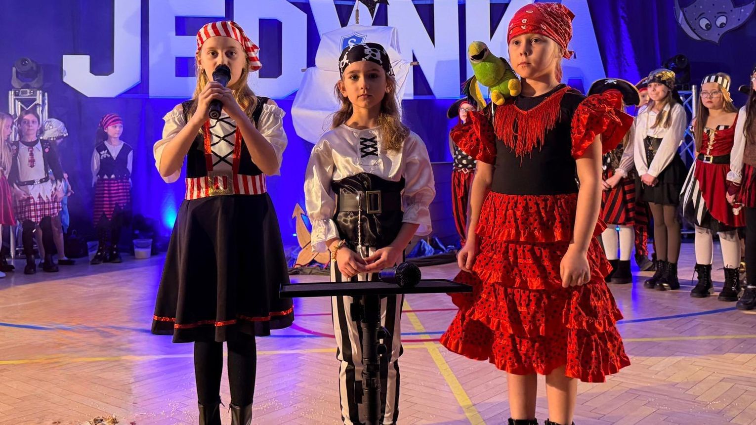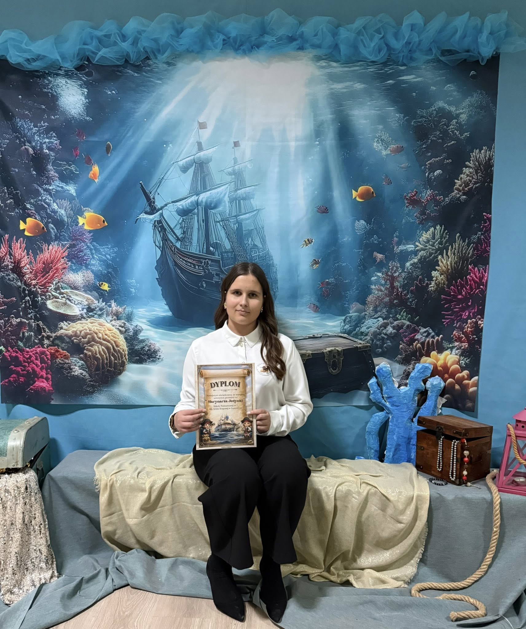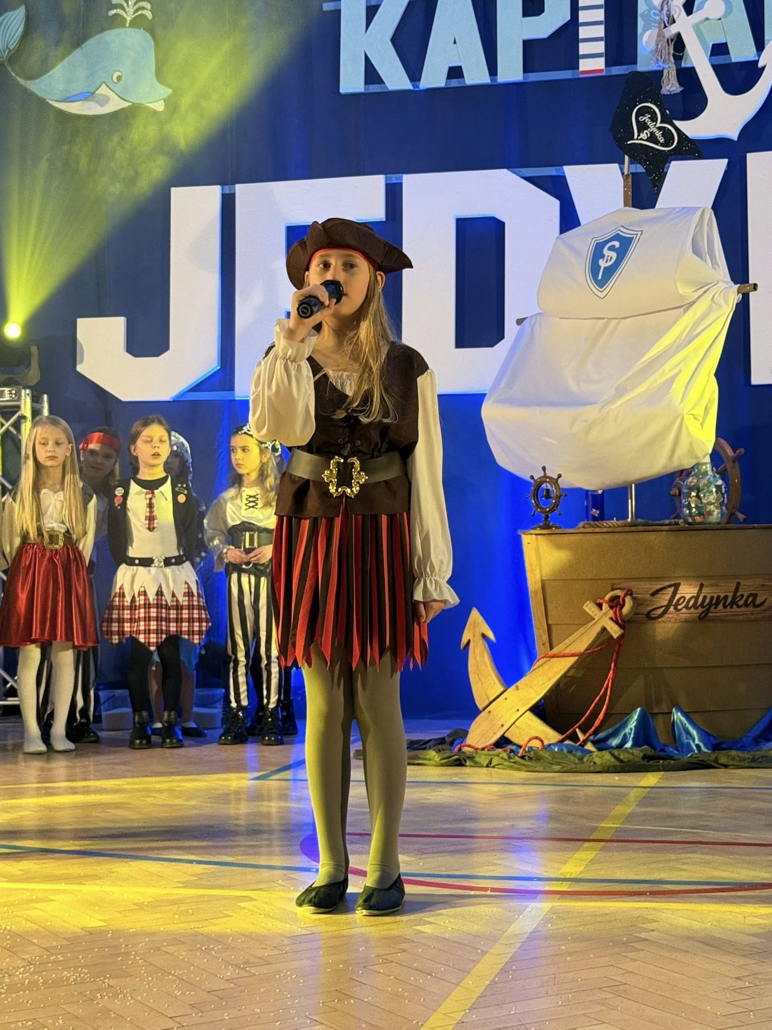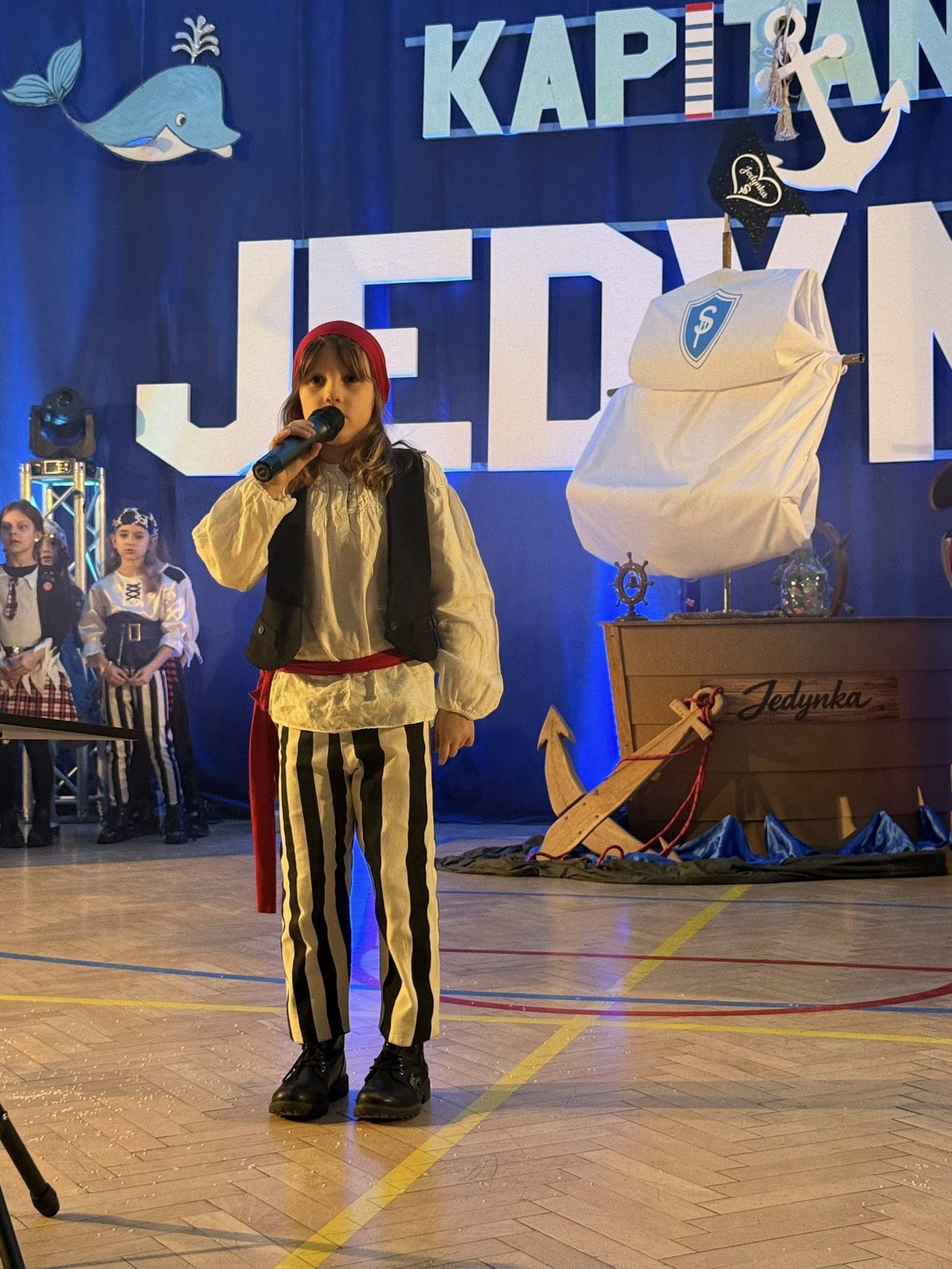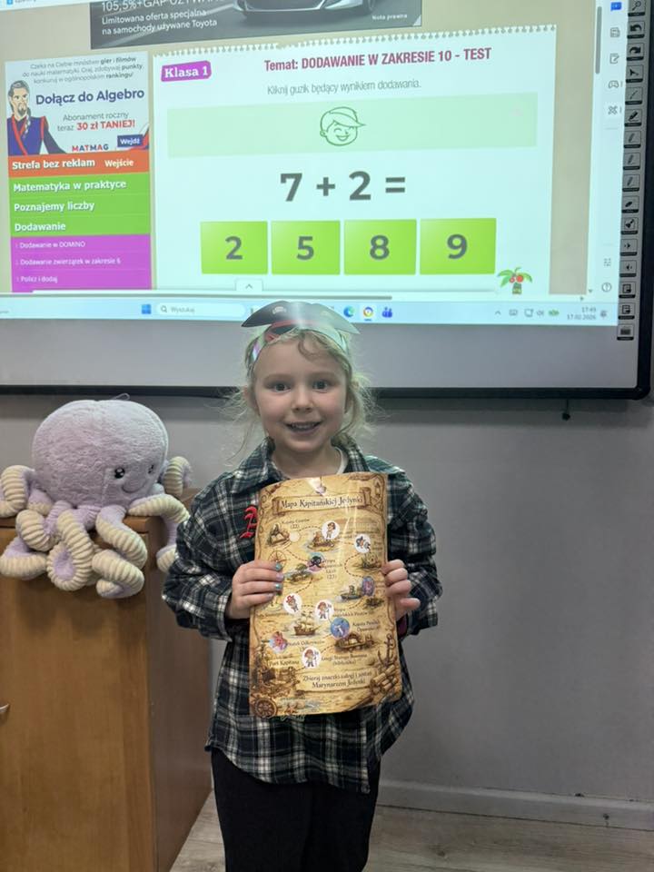 Wyjątkowym momentem było także wykonanie specjalnie przygotowanej na tę okazję piosenki o szkole, ułożonej z myślą o najmłodszych. Utwór pełen ciepłych słów o przyjaźni, nauce i wspólnym odkrywaniu świata, zaśpiewali nauczyciele, wzbudzając ogromne wzruszenie wśród dzieci oraz rodziców. Wspólny śpiew doskonale wpisał się w marynistyczny klimat wydarzenia i podkreślił, że „Kapitańska Jedynka” to miejsce, w którym każdy uczeń może rozwinąć skrzydła. Niezwykle nastrojowym punktem programu było również odczytanie tajemniczego listu, który – jak przystało na morską opowieść – został odnaleziony w butelce. Dyrektor szkoły i jednocześnie Kapitan Jedynki, Magdalena Andrzejczak, odczytała jego treść, zapraszając do wspólnej podróży ku wiedzy, marzeniom i sukcesom. Dziękujemy za tak liczny udział i wspaniałą atmosferę.