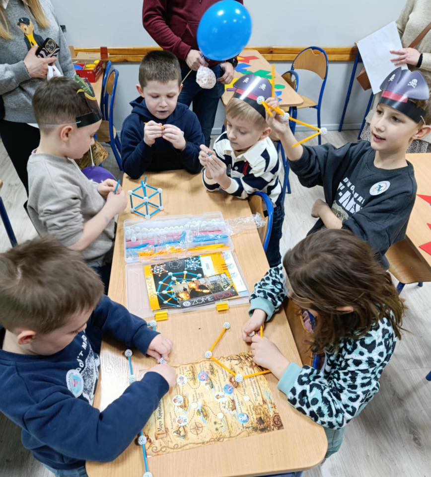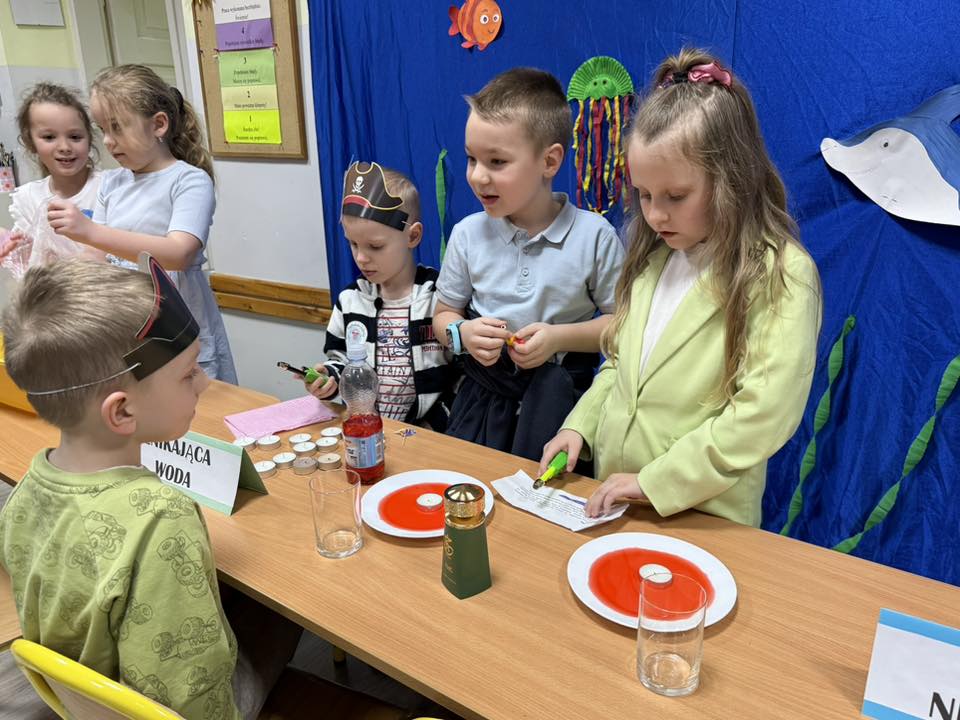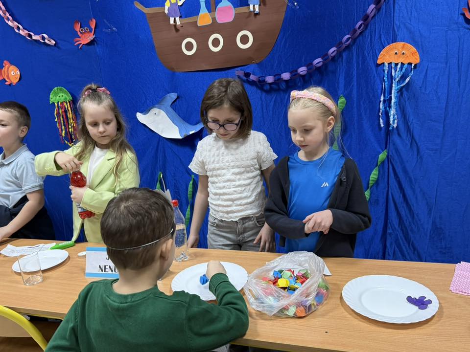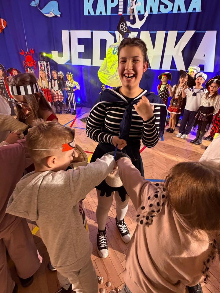 Prawdziwym hitem wydarzenia okazał się również „Bal u kapitana” – pełen muzyki, śmiechu i emocjonujących, morskich konkurencji. Dzieci z entuzjazmem włączały się do wspólnej zabawy, pokazując, że duch współpracy i radość odkrywania to prawdziwe skarby tej szkoły. Na gości czekało mnóstwo atrakcji edukacyjnych i artystycznych. W laboratorium małego chemika młodzi odkrywcy mogli przeprowadzać fascynujące eksperymenty, a podczas zagadek anglojęzycznych sprawdzić swoje językowe umiejętności.