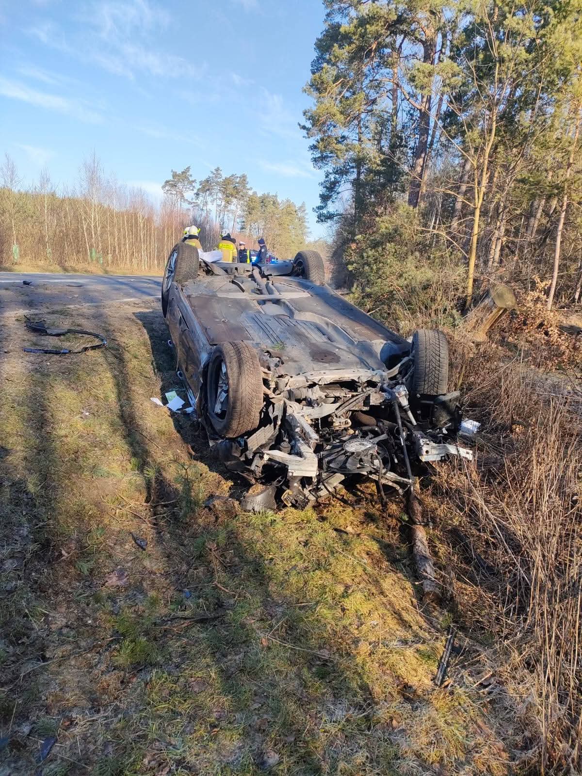 Ze wstępnych ustaleń policjantów wynika, że 37-letni mieszkaniec Gostynina kierujący BMW na łuku drogi najprawdopodobniej stracił panowanie nad pojazdem, w wyniku czego samochód dachował.