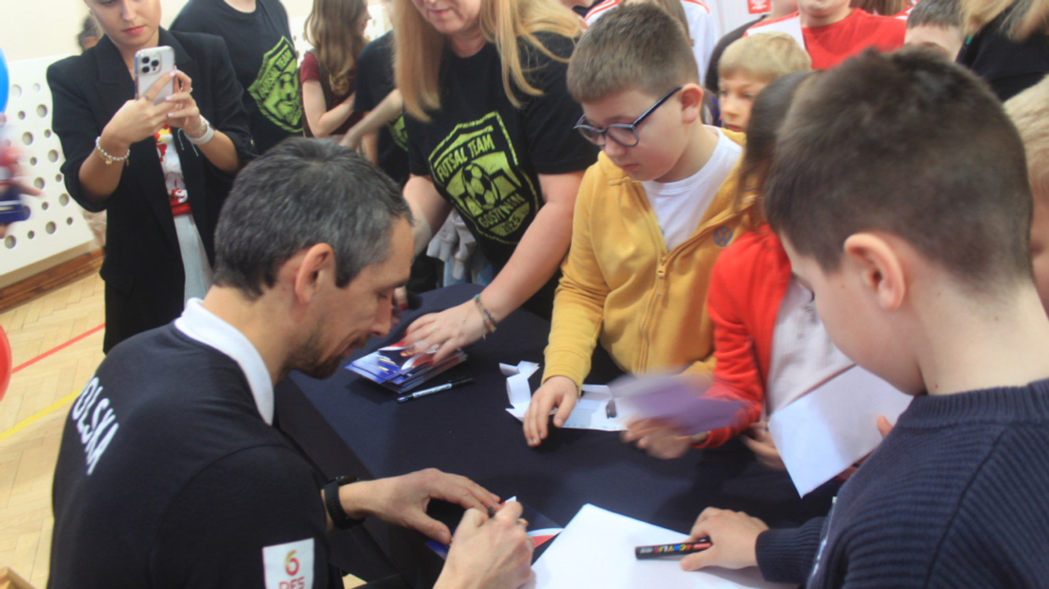 Po odpowiedziach Bartłomiej Dębicki rozdawał młodym ludziom autografy na specjalnie przygotowanych zdjęciach, ze strony Futsal Team Gostynin, rozdano także dzieciom koszulki z logo klubu.