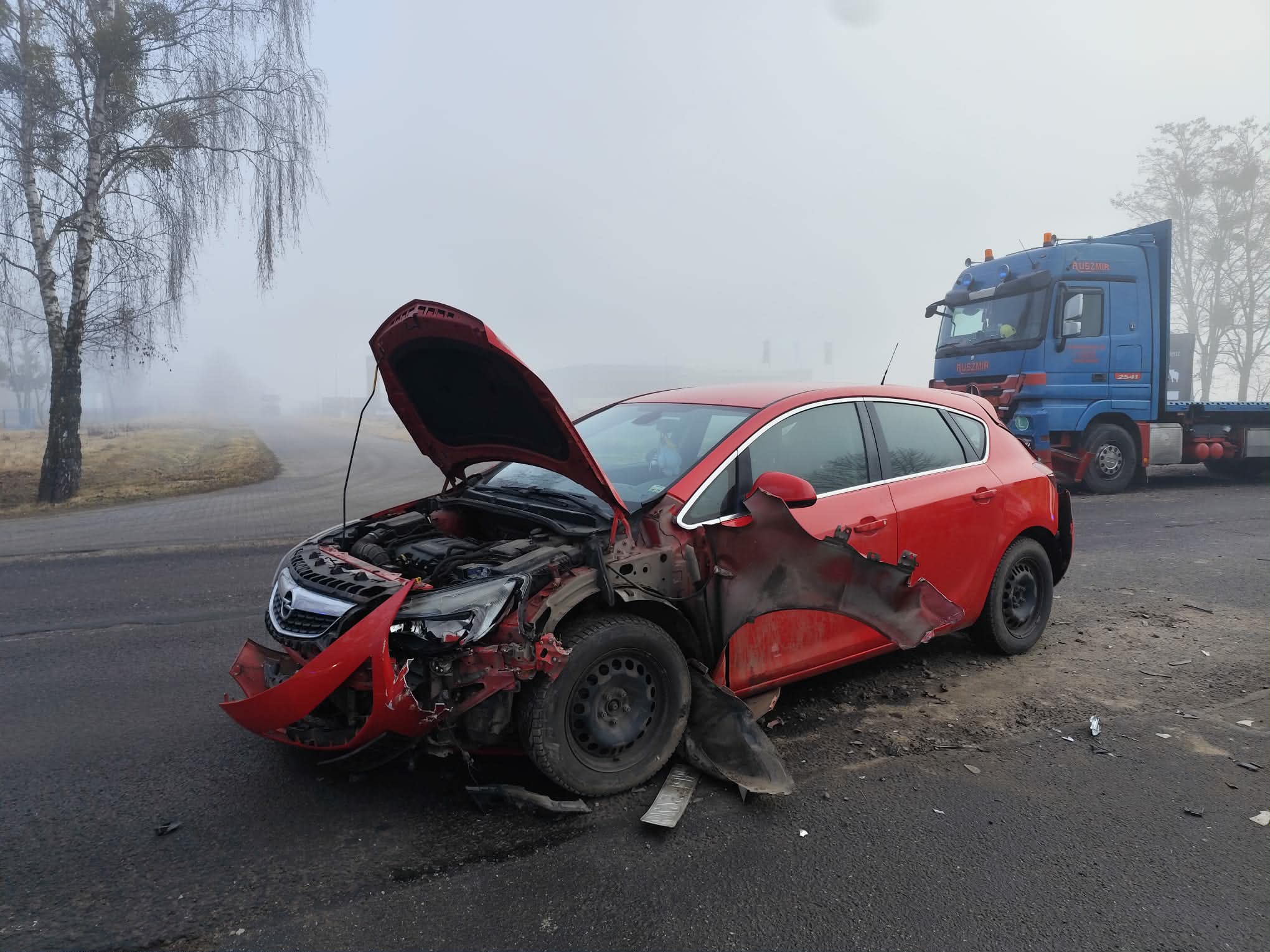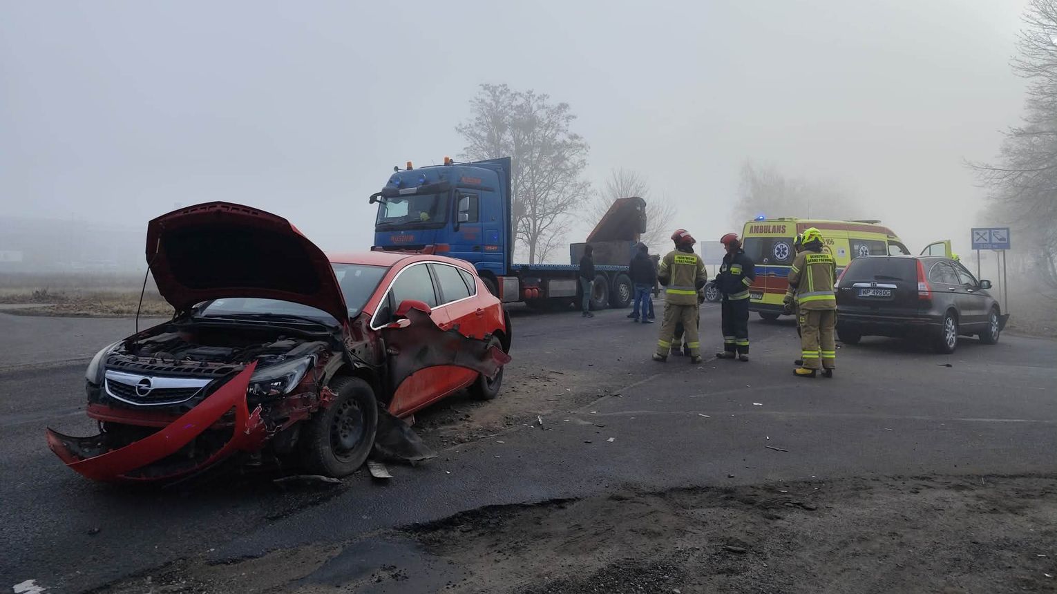 Policjanci wstępnie ustalili, że 35-letni kierujący ciężarowym Mercedesem najprawdopodobniej nie zachował bezpiecznej odległości od poprzedzającego pojazdu i uderzył w tył Opla, którym kierowała 34-latka. Następnie kierująca Oplem uderzyła 67-letniego kierującego Hondą, który jechał w przeciwnym kierunku. W wyniku poniesionych obrażeń kierująca oraz pasażerka Opla trafiły do szpitala.