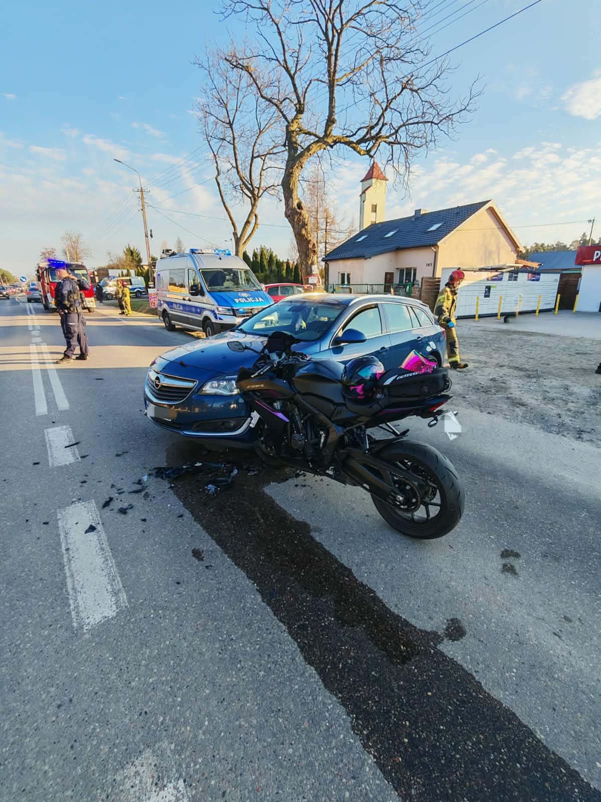 Ze wstępnych ustaleń policjantów wynika, że 44-letni kierujący Oplem nie ustąpił pierwszeństwa przejazdu 41-letniej kierującej motocyklem (Hondą). W wyniku poniesionych obrażeń kierująca jednośladem trafiła do szpitala. Kierujący byli trzeźwi, posiadają uprawnienia do kierowania pojazdami.