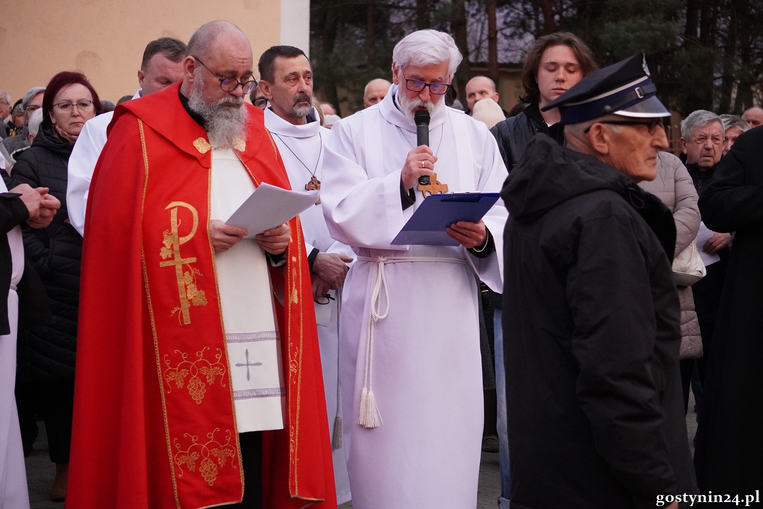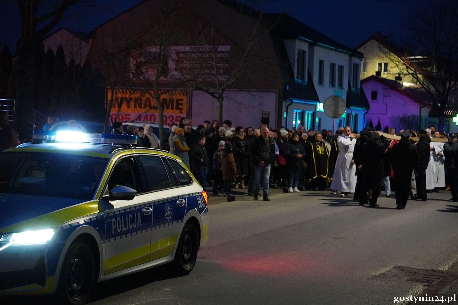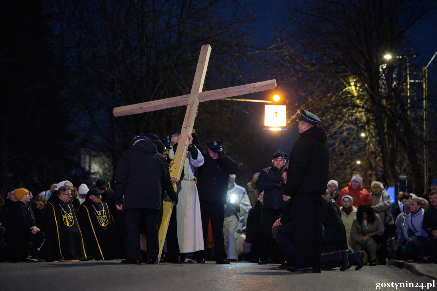 W piątkowy wieczór mieszkańcy Gostynina po raz kolejny odpowiedzieli na zaproszenie parafii Miłosierdzia Bożego do wspólnej Drogi Krzyżowej. Podczas Eucharystii ks. prof. dr hab. Krzysztof Stępniak w homilii zasugerował aby dziś spojrzeć na krzyż wyjątkowo. - Gdy patrzymy na ukrzyżowanego, dostrzegamy ból, cierpienie, udrękę i poniżenie Jezusa - mówił kapłan i podał przykład obrazu hiszpańskiego malarza Diego Velazqueza z XVII wieku, na którym Jezus jest przedstawiony na czarnym tle, stopy spoczywają na podpórce, a połowę twarzy zakrywają włosy. - Postać Jezusa jest na tym obrazie dostojna, to jest Chrystus zwycięski, to jest Ten, którego można nazwać Bramą Niebios otwartych dla każdego z nas. Kiedy dzisiaj będziemy kroczyć ulicami naszego miasta dźwigając krzyż, może niech towarzyszy nam właśnie taki Chrystus - zwycięski i dostojny - mówił duchowny.