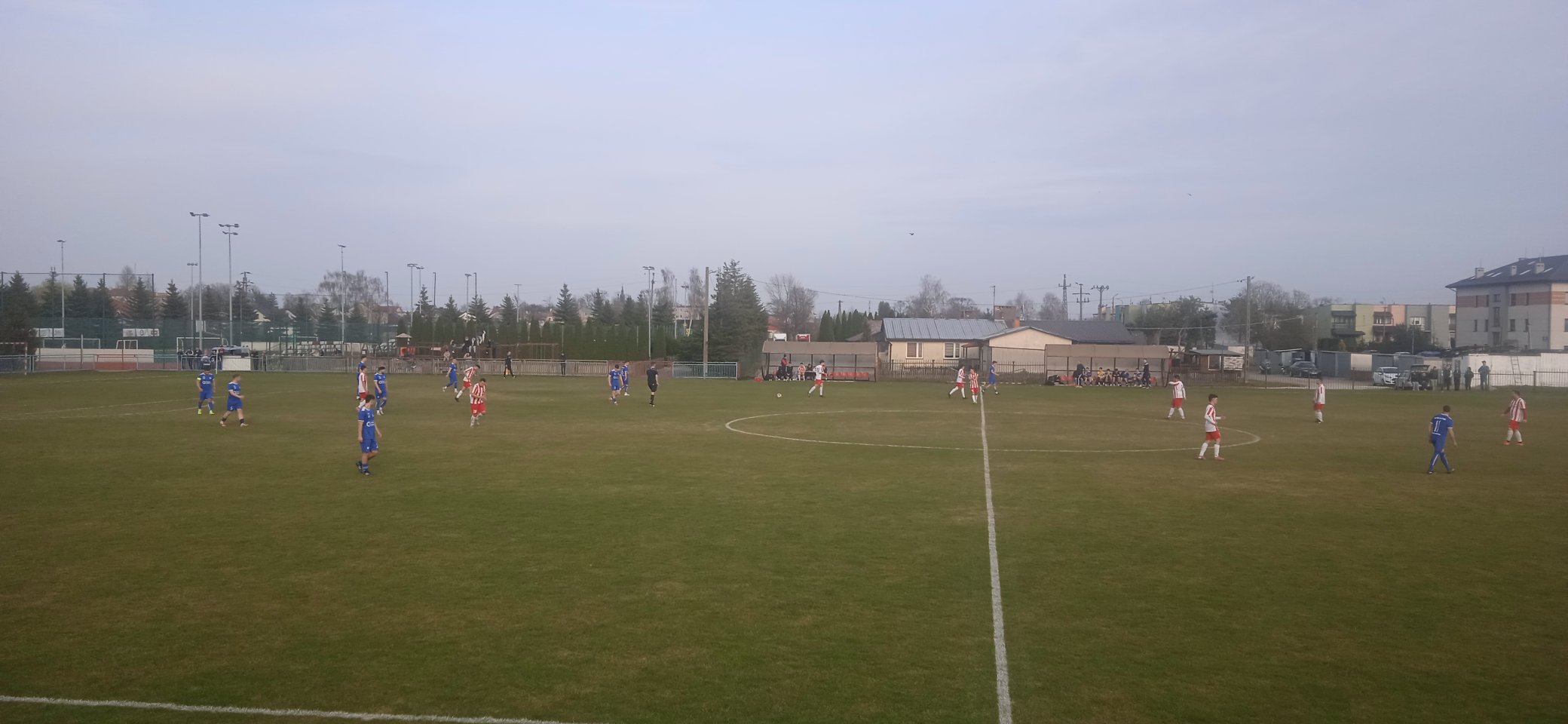 Gospodarze zdołali stawić czoła Mazurowi jedynie do 23 minuty. Wówczas po podaniu od Mateusza Ostrowskiego, Michał Matecki pięknym strzałem po długim rogu w okienko bramki dał prowadzenie naszej drużynie. Na 2:0 podwyższył tuż przed przerwą Adam Dubielak po strzale głową a znakomite dośrodkowanie do 18-letniego napastnika Mazura zaliczył Jarosław Brzemiński.
