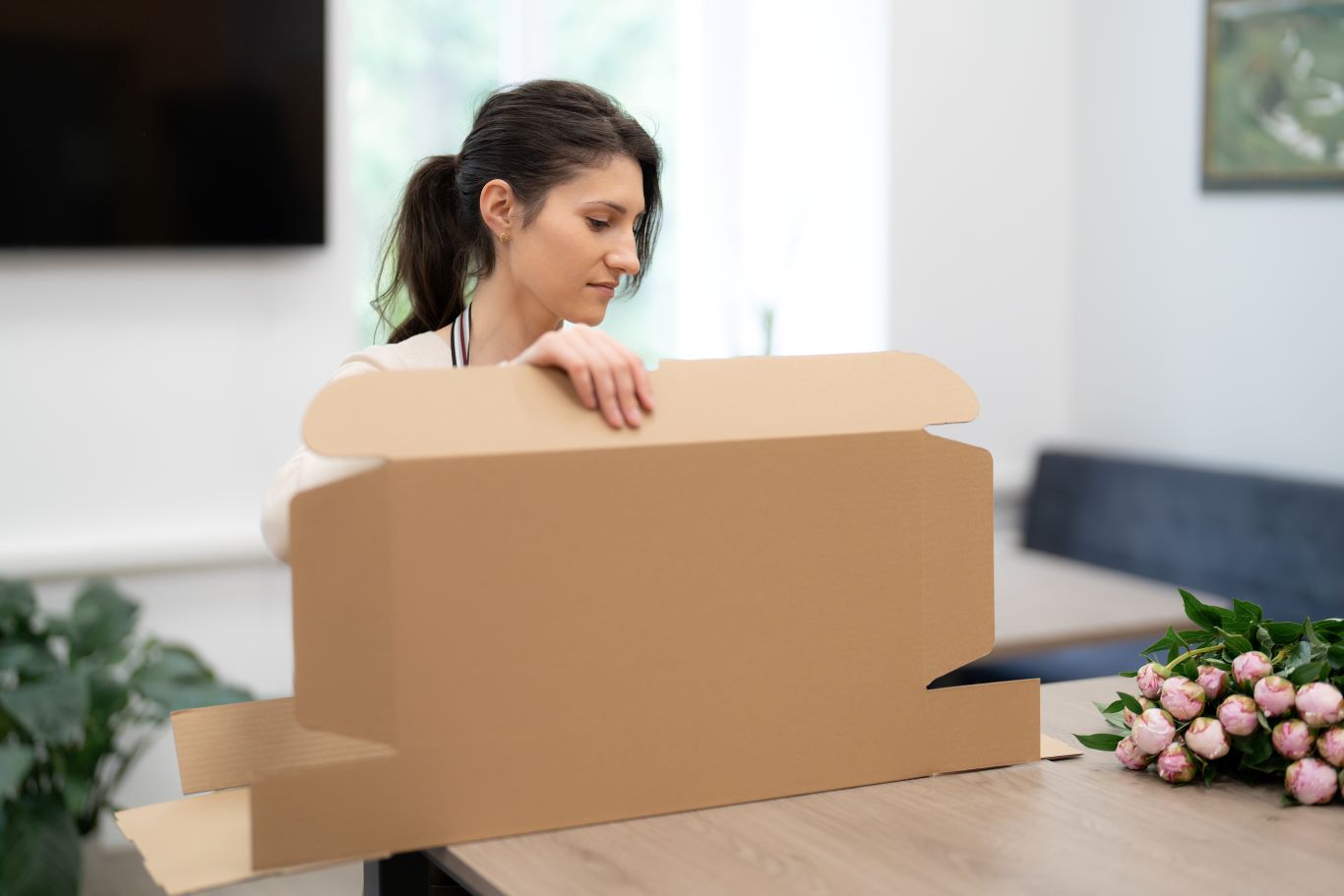 - Zawsze zaklejaj dno kartonu taśmą w kształcie litery H – wzdłuż szczeliny i prostopadle na obu końcach
