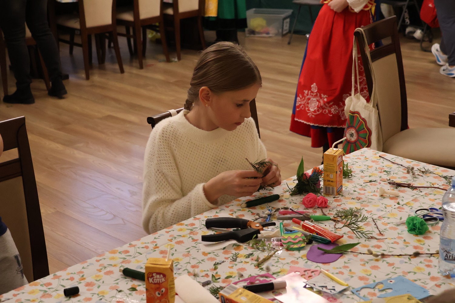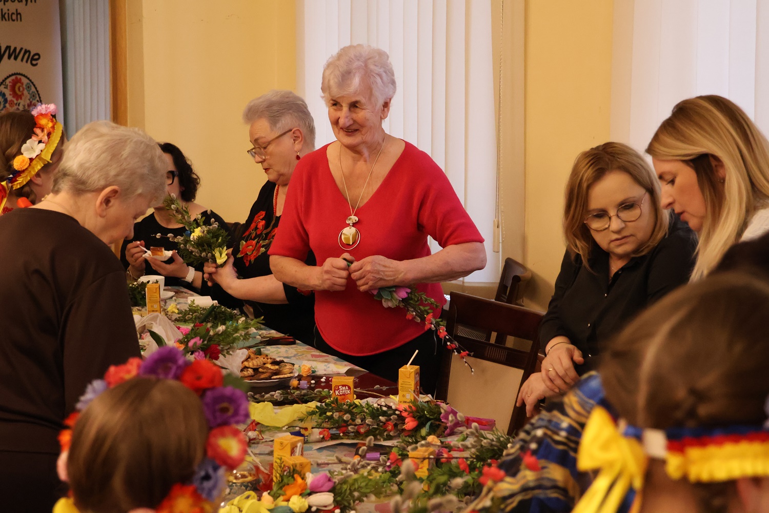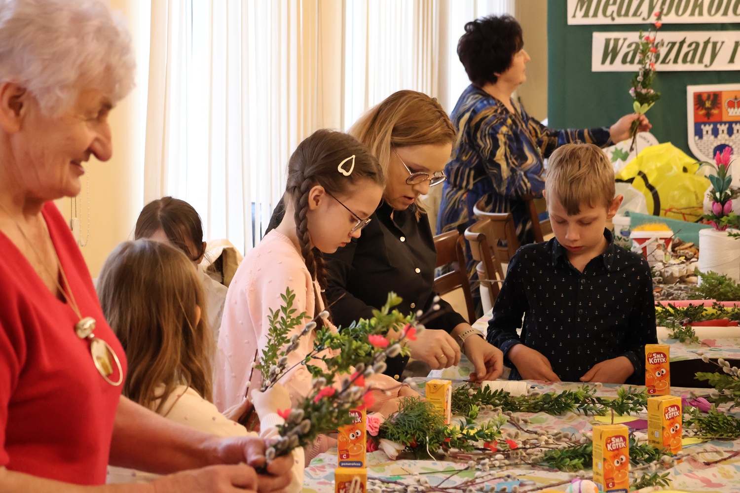 Istotnym elementem wydarzenia był aktywny udział seniorów ze Szczawina Kościelnego, którzy podzielili się swoją wiedzą i doświadczeniem z młodszymi uczestnikami. Podczas warsztatów wykonywano tradycyjne ozdoby świąteczne oraz palmy wielkanocne, prezentując dawne techniki rękodzielnicze i przybliżając uczestnikom bogactwo lokalnych zwyczajów. To właśnie dzięki ich zaangażowaniu możliwe było autentyczne przekazywanie tradycji kolejnym pokoleniom.