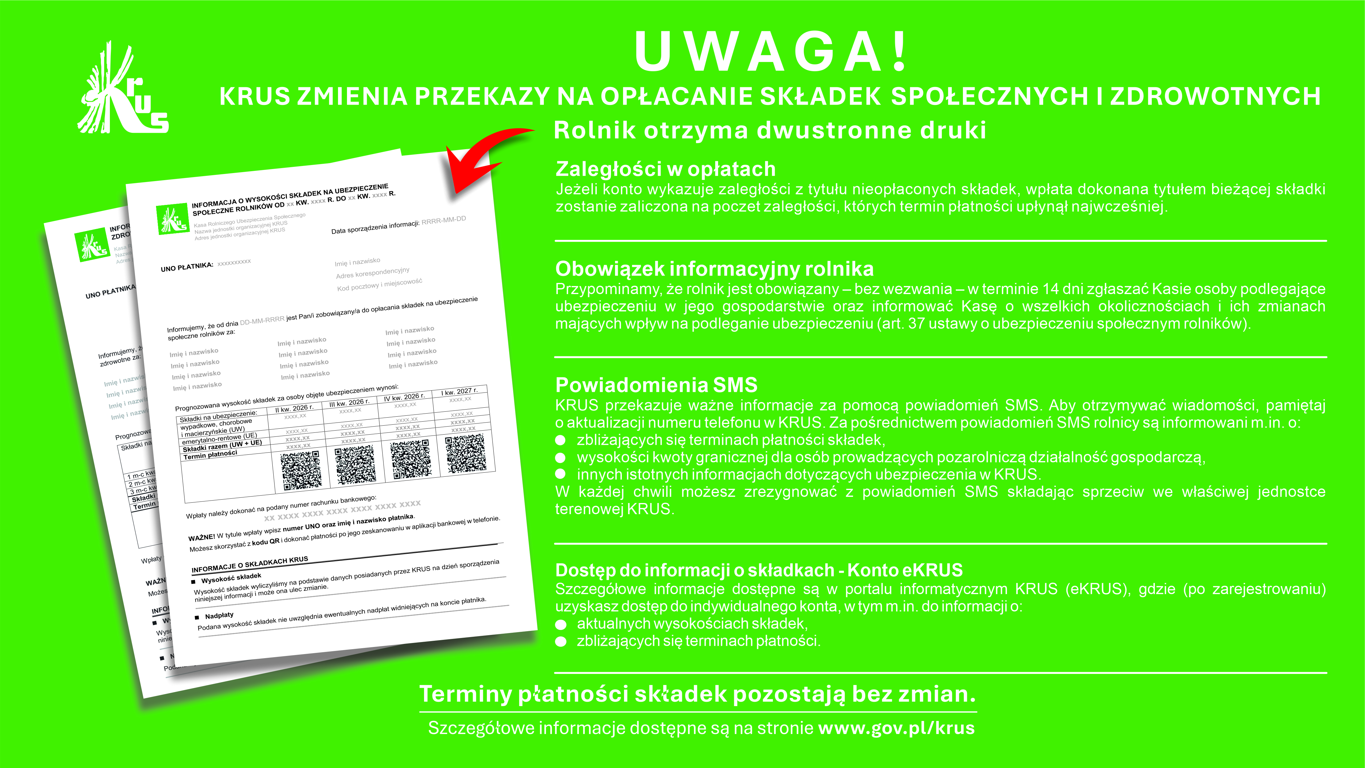 Szczegółowe informacje dotyczące nowych zasad oraz aktualnych przepisów dostępne są na stronie internetowej KRUS: