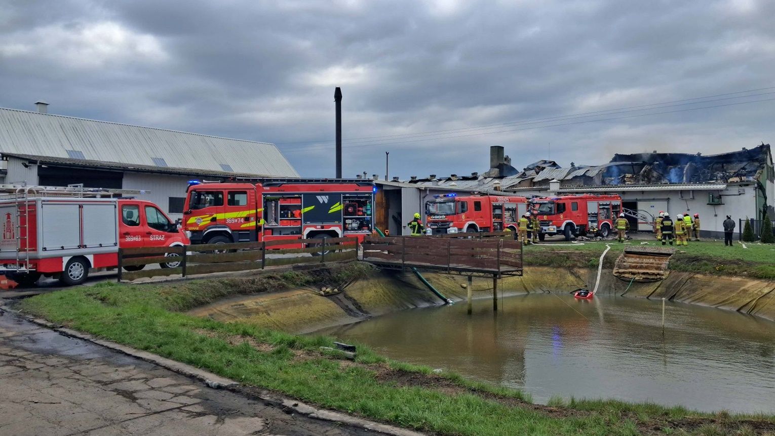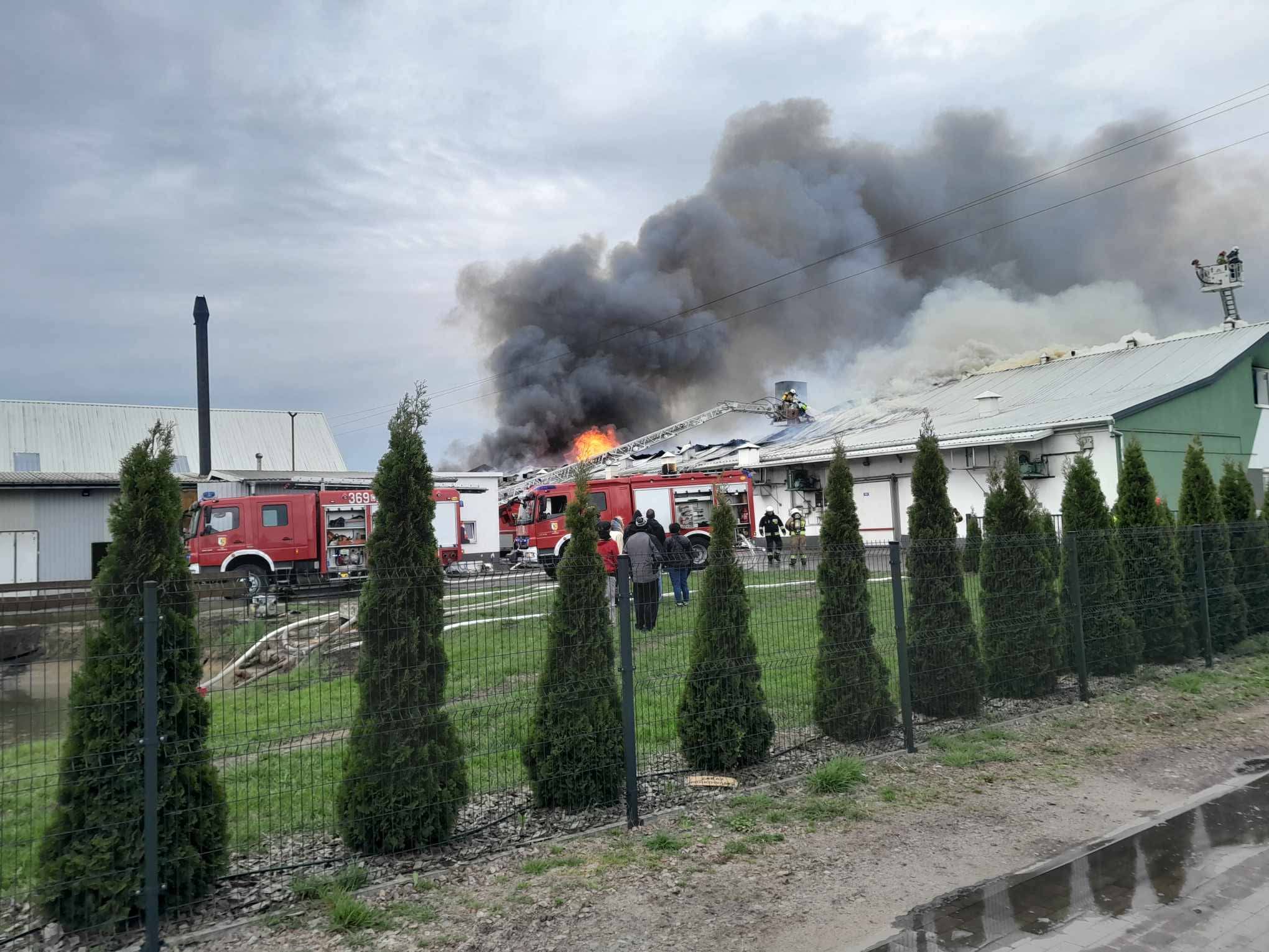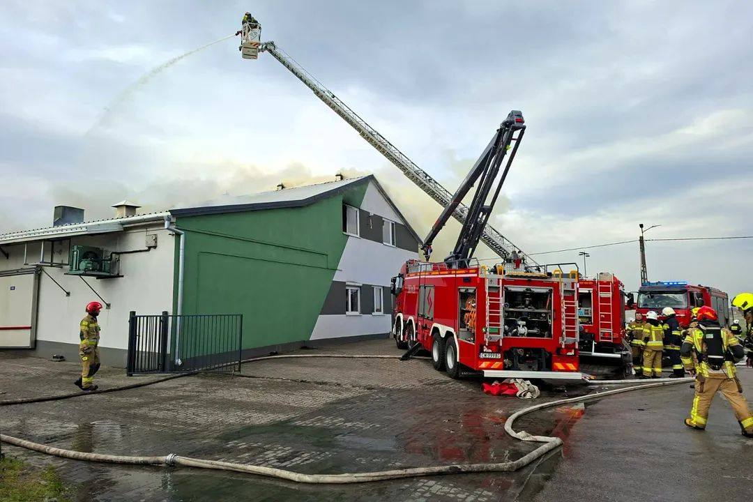 Pożar objął halę, w której składowano i produkowano materiały związane z branżą spożywczą, w tym karmę i suszone gryzaki dla psów. Strażacy podkreślali, że gaszenie było wyjątkowo trudne, ponieważ płonął łatwopalny materiał, wymagający wielokrotnego przelewania wodą.