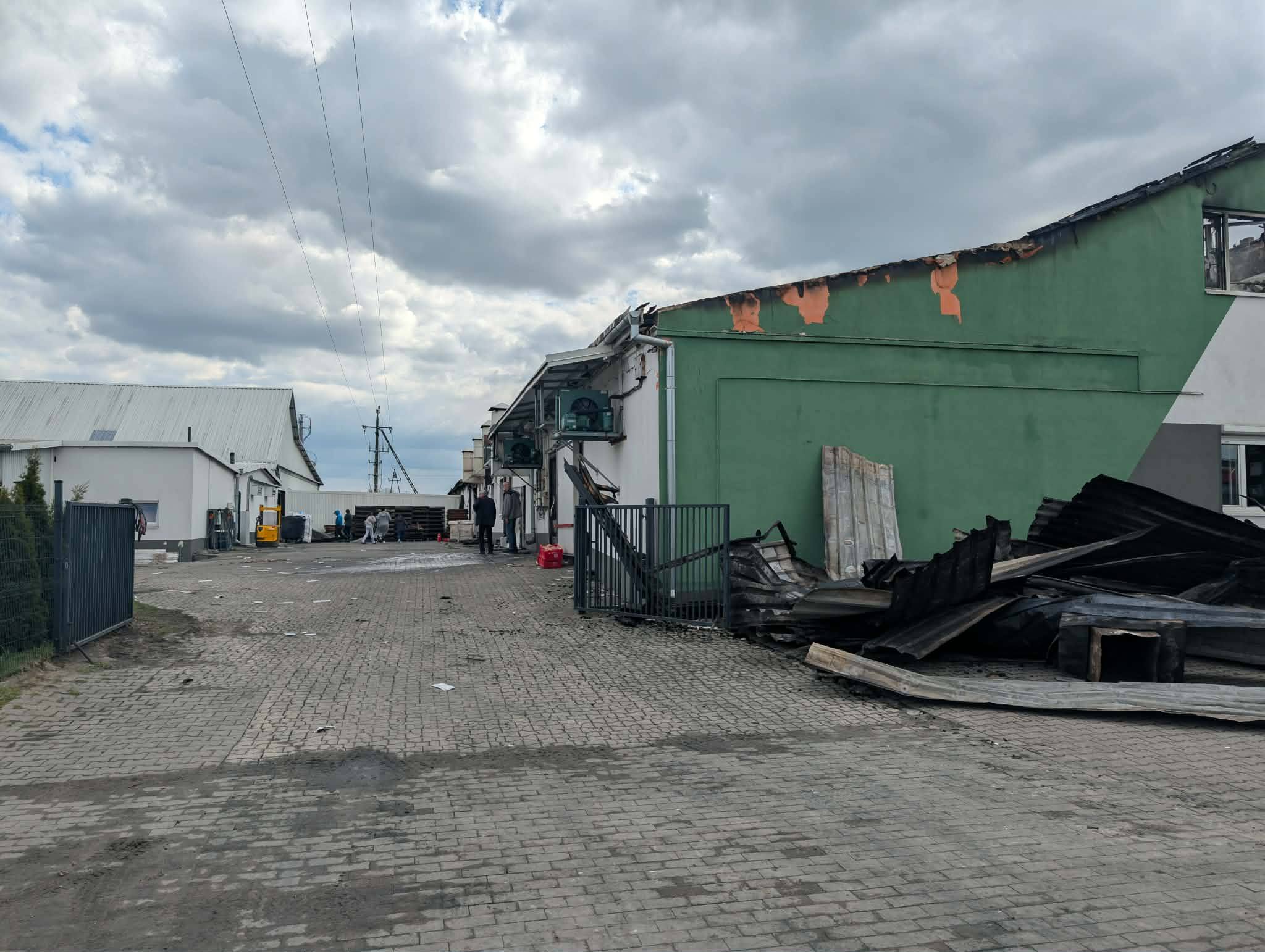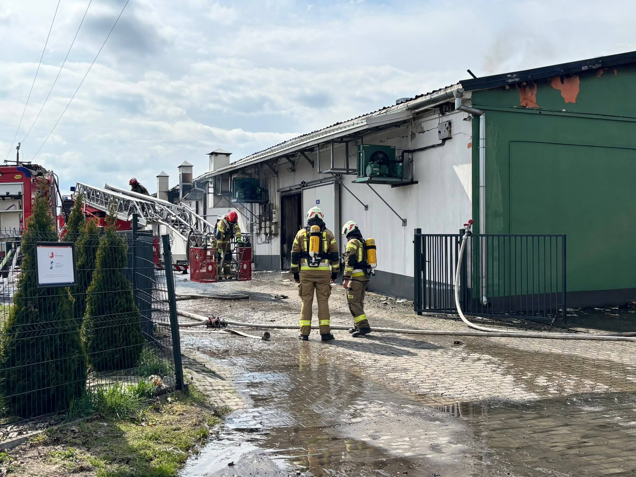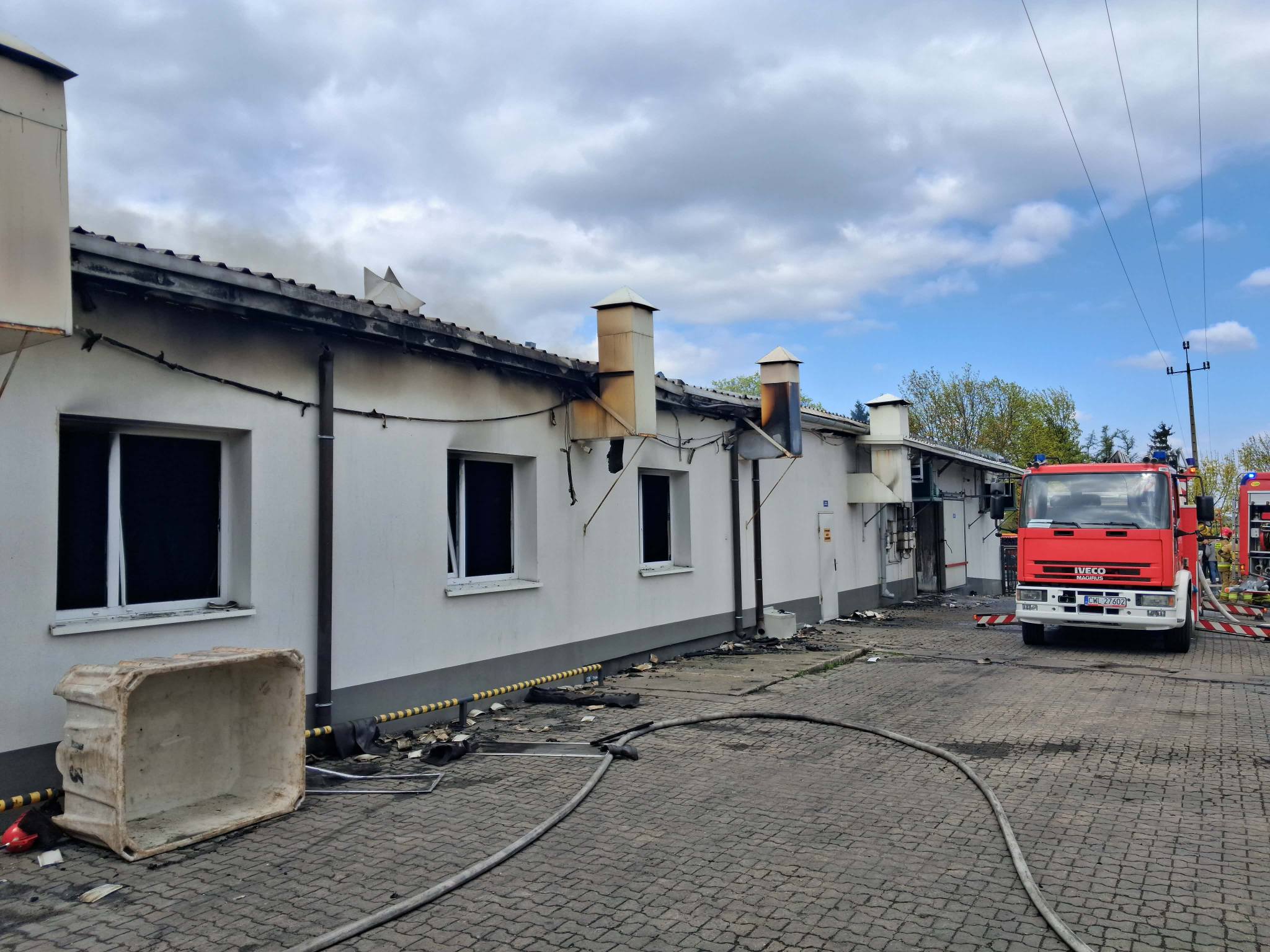 Pożar objął halę, w której składowano i produkowano materiały związane z branżą spożywczą, w tym karmę i suszone gryzaki dla psów. Strażacy podkreślali, że gaszenie było wyjątkowo trudne, ponieważ płonął łatwopalny materiał, wymagający wielokrotnego przelewania wodą.