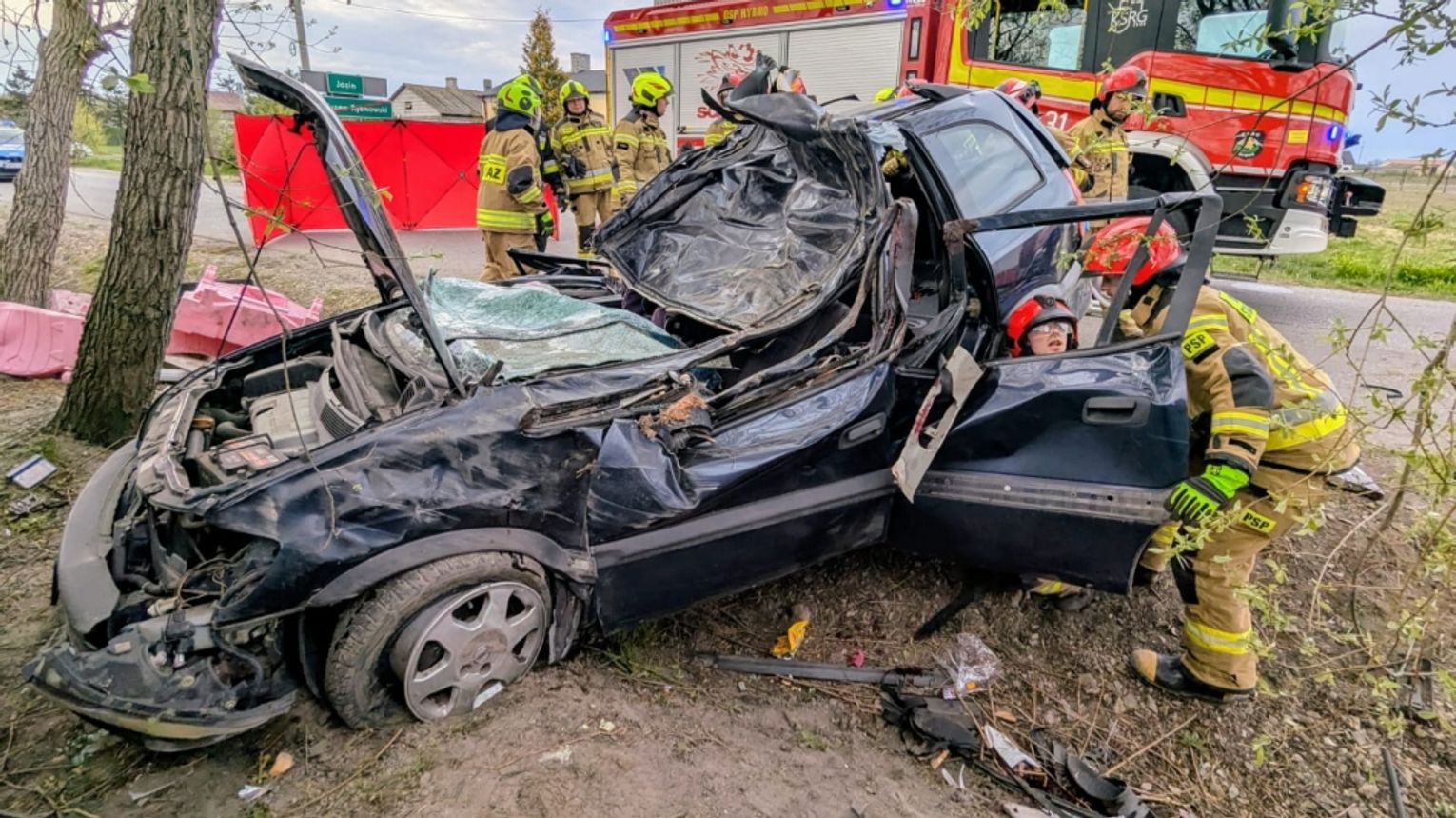 Do śmiertelnego w skutkach zdarzenia doszło w niedzielę, około kwadransa przed godziną 18, w miejscowości Józin w gminie Rybno. Ze wstępnych ustaleń wynika, że kierujący oplem wykonywał manewr wyprzedzania samochodu marki BMW. Po zderzeniu opel dachował, a następnie dachem uderzył w przydrożne drzewo.