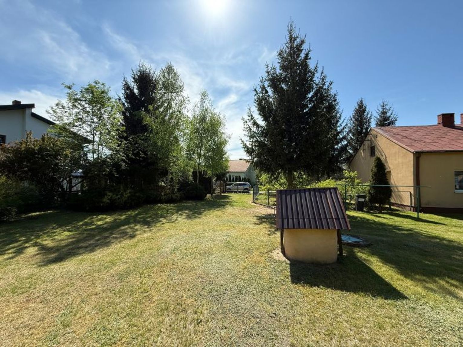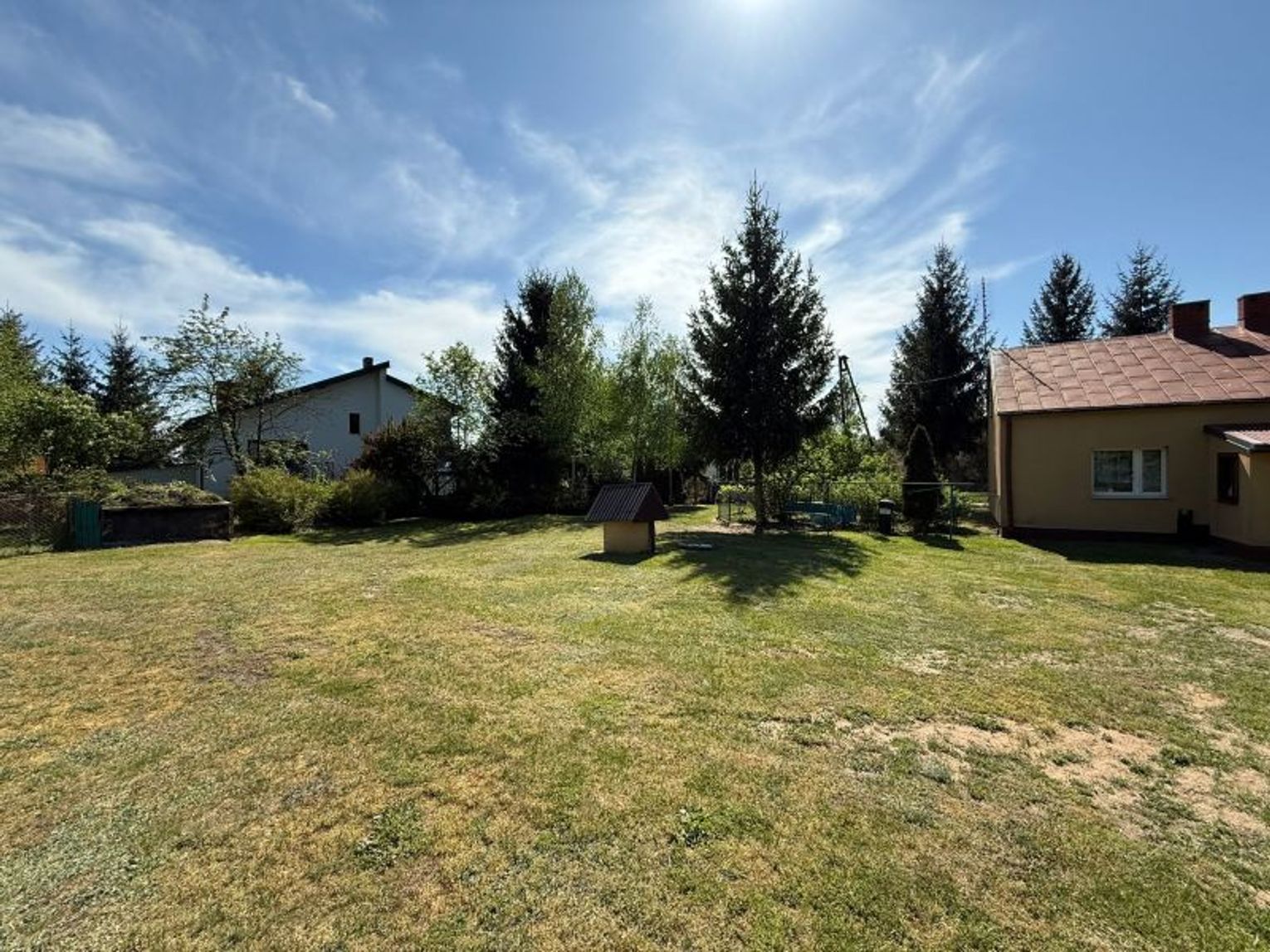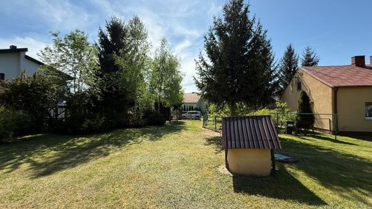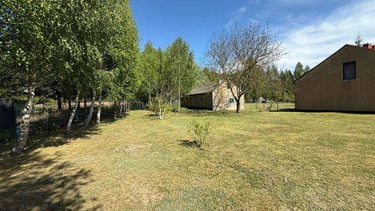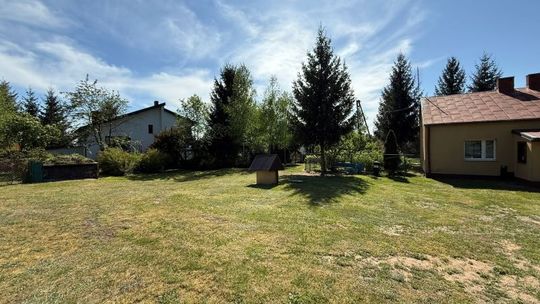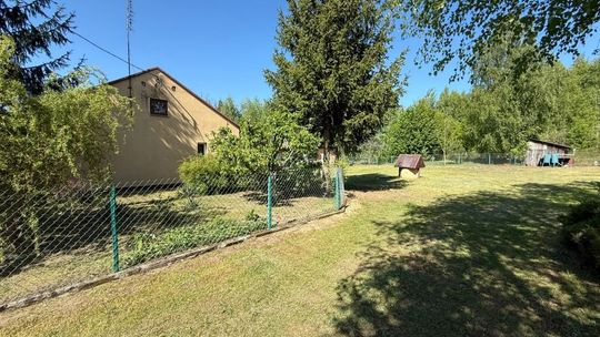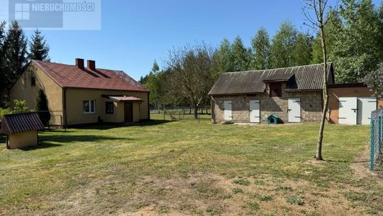 Teren na którym zlokalizowany jest dom, skłąda się z 2 działek. Zabudowanej i ogrodzonej o powierzchni 2390 m2 oraz działki przyległej, usytuowanej za ogrodzeniem o powierzchni 3000 m2. Na terenie posesji znajduję się budynek gospodarczy, drewniana szopka, oraz murowany garaż umiejscowiony, przy budynku gospodarczym, co stanowi dodatkowe zaplecze użytkowe. Ponad to na działce znajduję się piwnica typu ziemianka.